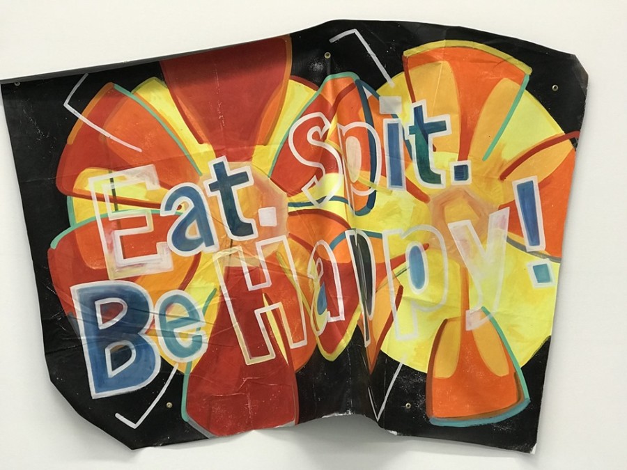 Adams says, “My work explores the language and objects that mark our local and national landscapes. Through the materiality of painting and drawing, I embody the experience of discovering and recognizing these markers as they make me aware of my identity and place simultaneously. My studio practice is peripatetic, allowing for any object that crosses my path to be source material for the studio. Through additive and subtractive processes that enhance or disrupt the legibility of the source images, my works become conceptually multi-layered. While I take a visual interest in found or appropriated objects, my translation of the material points to the enduring signifiers of shared space such as the residue of class, ownership, celebration, and our collective and personal histories. My paintings and drawings take on double or triple meanings as they seek to guide viewers through my experience while allowing them to recall their own.”