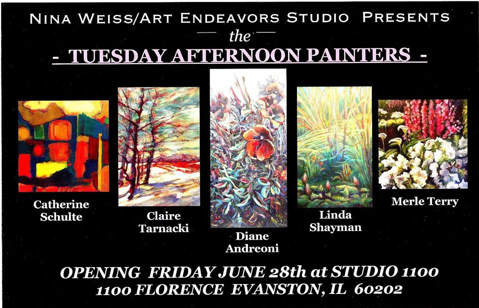 Tags: 1100 Florence, Art Endeavors, Catherine Schulte, Claire Tarnacki, Di Andreoni, Evanston, Linda Rubin Shayman, Merle Browdy Chalem Terry, Nina Weiss, The Tuesday Afternoon Painters
