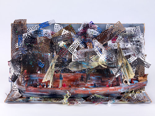 A North Lawndale native, Tate grew up in a home without a TV or radio, in which the family entertained one another with songbooks and reading aloud. “I remember hours spent exploring abandoned buildings, walking the streets of changing neighborhoods and playing in my mother’s closet,” said Tate. These existential journeys were filled with fear, excitement and materials that would later inform his work. Tate finds the beauty and subtlety in everyday life, objects and people, a perspective inherent in his narrative, which speaks of personal and family history while addressing a broader collective memory through social and political commentary. “Intuit’s exhibition explores Tate’s interest in storytelling, personal narrative, and political commentary-often woven together-through examples of his work from 2003 to the present,” said curator Alison Amick.