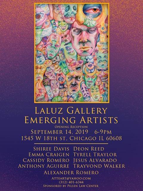 Tags: Alexander Romero, Anthony Aguirre, Cassidy Romero, Chicago, Deon Reed, Emerging Artists 2019, Emma Craigen, Jesus Alvarado, LALUZ Gallery, Lower West Side, Shiree Davis, Trayvond Walker, Tyrell Traylor