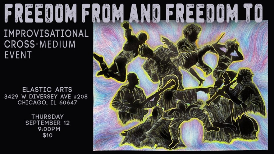 Tags: Adam Zanolini, Andrea Wukitsch, Angel Bat Dawid, Chicago, Cristal Sabbagh, Dan Schwarzlose, Ed Clemons, Elastic Arts, Eli Sabbagh, Erin Peisert, Freedom From and Freedom To, Janice Misurell-Mitchell, Jasmine Mendoza, Keisha Janae, Lia Khol, Logan Square, N.w. Long, Peter Redgrave, Ramah Malebranche, Sara Zalek, Ugochi Nwaogwugwu, Wannapa P-Eubanks, Zach Nicol