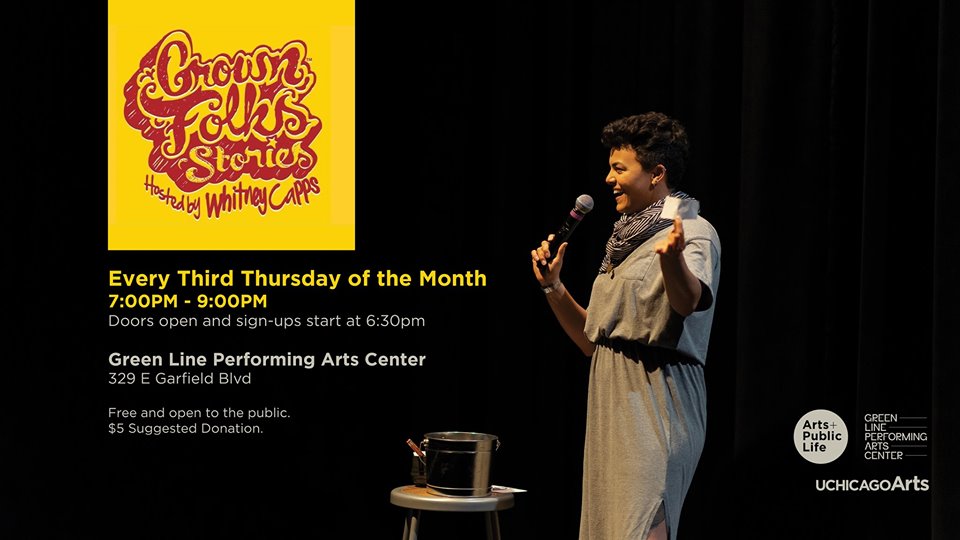 Tags: Arts and Public Life, Cara Brigandi, Chicago, Eric Williams, Green Line Performing Arts Center, Grown Folk Stories, The GreenLight Series, The Silver Room, Washington Park