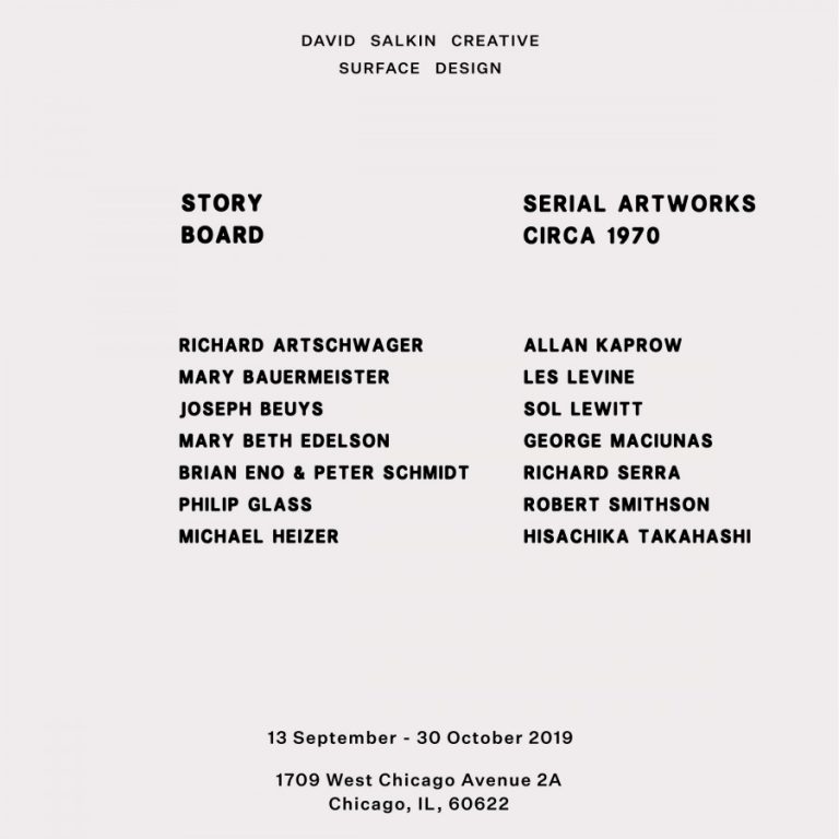 Tags: Allan Kaprow, Brian Eno, David Salkin Creative, George Maciunas, Hisachika Takahashi, Joseph Beuys, Les Levine, Mary Bauermeister, Mary Beth Edelson, Michael Heizer, Peter Schmidt, Philip Glass, Richard Artschwager, Richard Serra, Robert Smithson, Sol LeWitt, Storyboard | Circa 1970, West Town