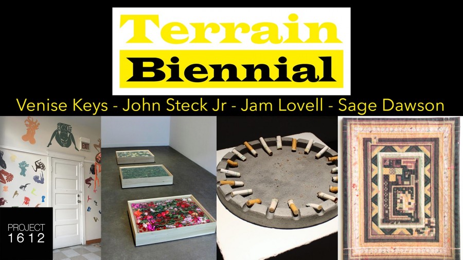 Join us on Sunday, October 13th for the opening celebration of Terrain Biennial at Project 1612. The opening will be at a new location (listed below) and will include four dynamic artists: Jam Lovell, Venise Keys, John Steck, Jr., and Sage Dawson.