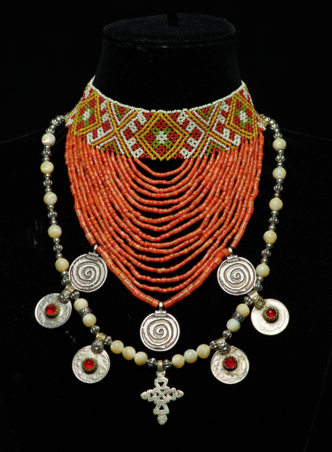Exhibiting in the U.S. for the first time, “Beading Therapy” showcases Nastasiya Marusyk’s gerdany (Ukrainian beadwork). The exhibition is in conjunction with her recently published book of the same title. The show consists of approximately 100 works, all completed over the past 5 years, including copies of early 19th and early 20thcentury gerdany; gerdany created in conjunction with fashion designers Halyna Hostetler of the brand ‘Zelenko’ and Natalie Herheliuk of the brand ‘Gaptuvalnya’ and featured in Chicago’s ‘Ukrainian Fashion Show’ 2017 and 2018; and gerdany from the series ‘Tradition and Modernity’. The gerdany are inspired by Ukrainian Trypillian culture as well as Indigenous American ritual stones and make use of old American coins, volcanic glass, maltese crosses of various metal alloys, stone-encrusted old coins, coral, mother of pearl, Murano glass and venetian beads.