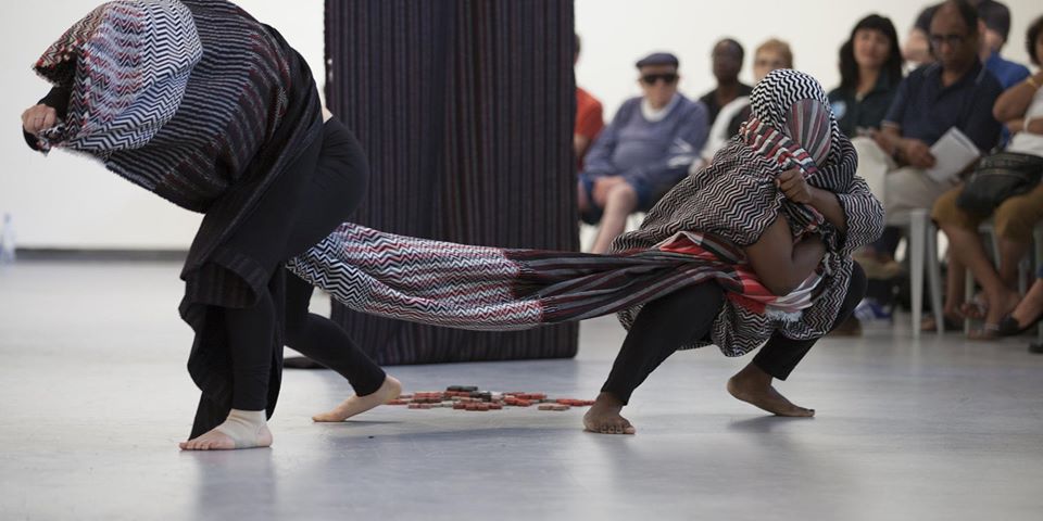 Image: Anna Martine Whitehead performance at Hyde Park Art Center in collaboration with Jamie Hayes/Production Mode, 2017. Photo: Sarah Pooley