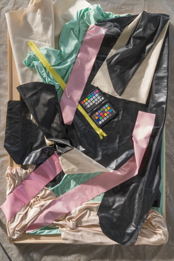 UGLY is pleased to present Easily Suede, an exhibition featuring new work by Nick Van Zanten, opening February 21 and running until March 28, 2020. An opening reception will be held from 7-10pm on February 21 at 1056 N Damen. This is Van Zanten’s first exhibition with the gallery and will feature new entries in his Formfit series of abstract/wearable wall-mounted fabric assemblages as well as a series of photographic and sewn compositions.