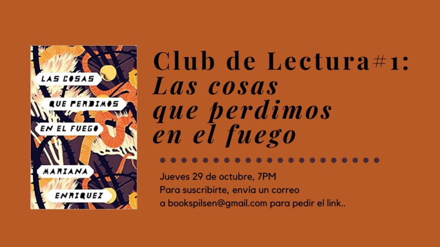 Para nuestro encuentro inaugural en octubre, leeremos Las cosas que perdimos en el fuego de la argentina Mariana Enríquez, un libro de cuentos que ahonda en lo siniestro de lo cotidiano. Charlaremos del libro por Zoom el día jueves 29 de octubre a las 7PM. ¡Quedan todos invitados! Para suscribirte, envía un correo a bookspilsen@gmail.com para pedir el link.