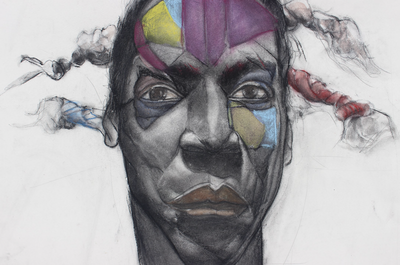 Utilizing charcoal, watercolor, and collage, Howard’s figures are typically warped, transcending time and space in their presentation, yet very attuned to the social realities and hardships experienced by Black Americans in urban environments. With close attention, Howard’s striking portrait drawings also reveal moments of glory, honor, and elevation.