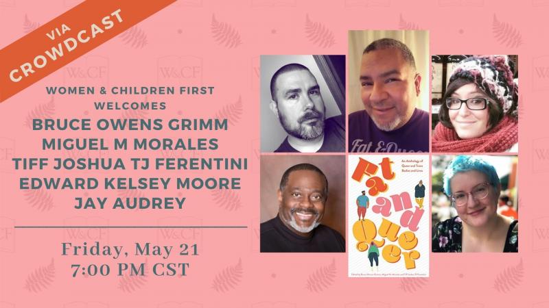 Join us for a virtual reading celebrating the release of Fat and Queer: An Anthology of Queer and Trans Bodies and Lives. This event will be hosted on Women & Children First’s Crowdcast Channel and feature Edward Kelsey Moore, Jay Audrey, Miguel M. Morales, Tiff Joshua TJ Ferentini, and Bruce Owens Grimm.