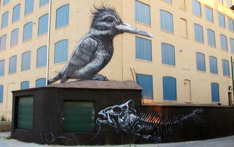 Little is known about ROA, who grew up in Ghent, Belgium but absorbed profound formative influences from American pop culture, in particular graffiti and hip-hop. After honing his craft under bridges and on abandoned warehouse walls throughout his hometown, ROA attracted international attention for his contributions to street art festivals across Europe, and in 2011, he was featured alongside Banksy, Shepard Fairey, Invader and others in “Art in the Streets,” the landmark street art exhibition at the Museum of Contemporary Art in Los Angeles.