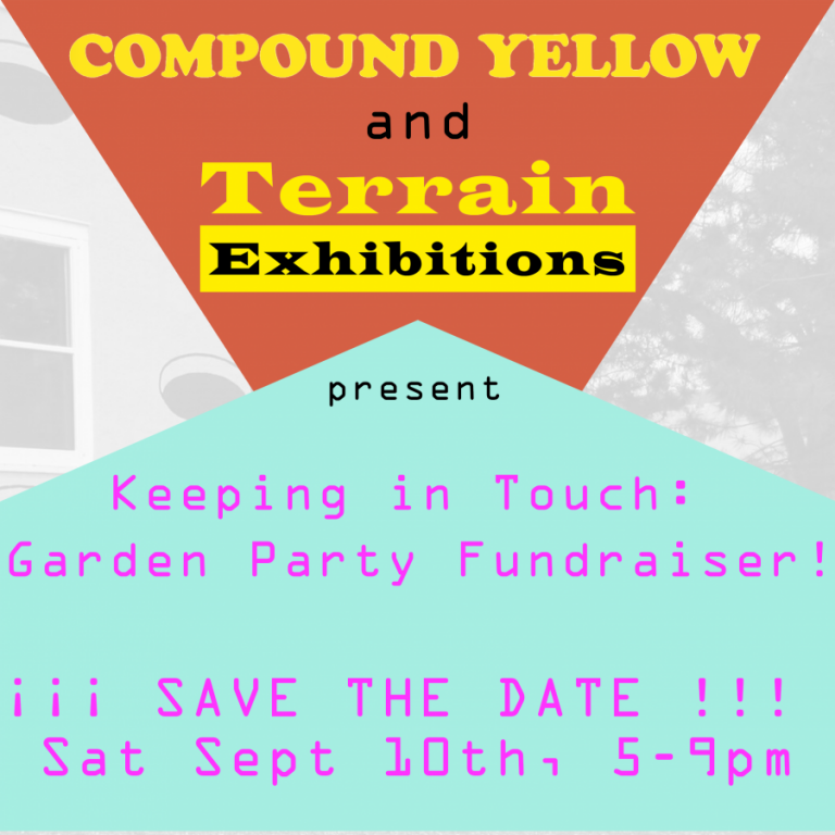 Dear friends of Compound Yellow and Terrain Exhibitions! Our two organizations are joining forces this summer to raise funds for the Terrain Biennial and Compound Yellow’s fall Side Yard Sounds series! Tickets are $25, with this ticket purchase you get: food and refreshments, a not so secret Garden Tour, an evening of EXCELLENT music curated by the infamous DJ Curt(is) Spins and the visual delight of seeing 60 + artists’ renditions of “Lawn Ornaments” and “Keeping in Touch” limited edition Care packages (K.I.T.S) all on auction! Auction ends at 9pm so don’t miss this opportunity to support two of your favorite organisation’s missions, spend a lovely evening with friends, meet other artists, dance and bring home original art! Don’t miss out on this super fun fall kickoff! For more information on Compound Yellow’s Side Yard Sounds series, 2021 (fall dates and artists to be announced very soon!): https://compoundyellow.com/side-yard-sound-series and Terrian Biennial, 2021, https://terrainexhibitions.org/