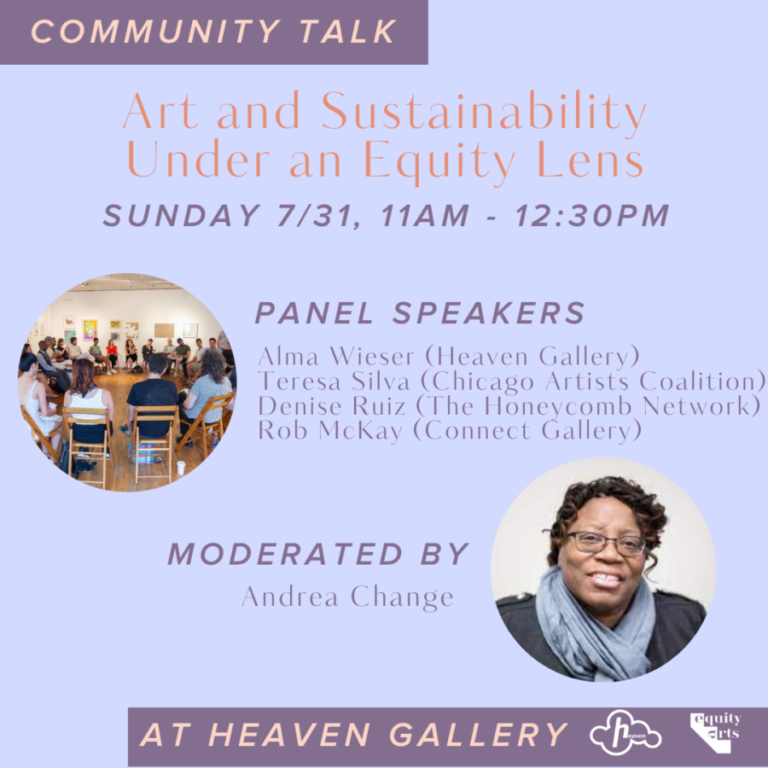 Join us Sunday, July 31st for our in-person community talk, “Art and Sustainability Under an Equity Lens” moderated by Andrea Change of Guild Literary Complex, who will consider questions such as: What types of equity frameworks can be used to advance racial equity? How can the narrative of scarcity in the arts be undone? How can alternative revenue streams build resiliency in community art spaces?