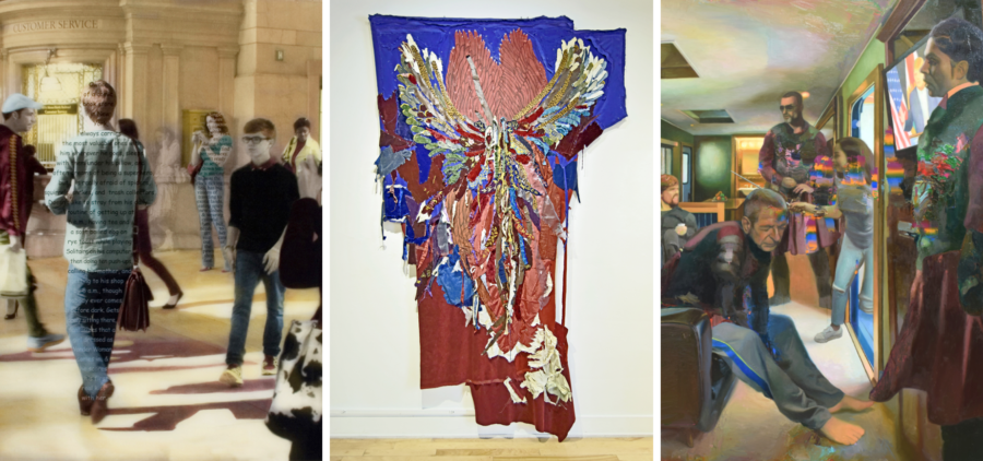 Karver evolves photography into mixed media panels of crowds and people in busy urban settings interlaced with narratives of disaffection. McCann‘s large paintings mesh smoothly rendered action figures, settings from banal Americana, and abstract impasto into complex and disturbing scenes. Schrag presents work in various media in which process and exploration invite the viewer to understand its manifestation in the work.
