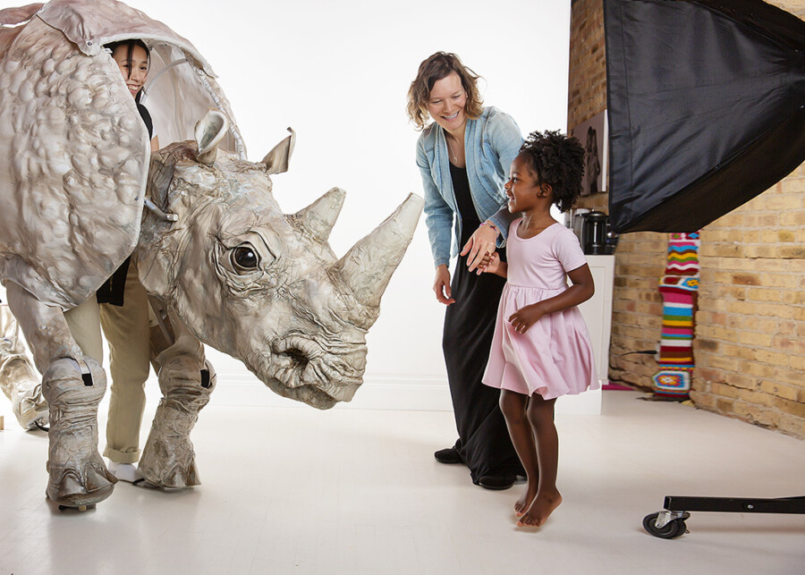 Come meet Juliette, a giant rhino puppet commissioned by Chicago kids and family photographer, Jill Liebhaber, to help bring awareness to rhino conservation at the local level. See the giant puppet in action and get a free souvenir photo taken with the puppet up close at Epiphany Center for the Arts on Saturday August 20th from 6 – 7 p.m. in support of the work of artist Victoria Fuller and her life-size inflatable rhino installation titled “Bring Back the Extinct Northern White Rhino.” children are encouraged to visit the puppet performance with adult supervision!