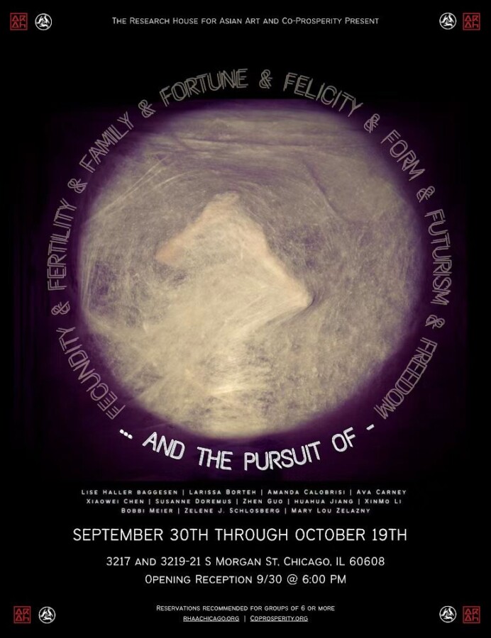 Tags: ... and the pursuit of..., Amanda Joy Calobrisi, Ava Carney, Bobbi Meier, Duk Ju L. Kim, Hana Jiang, Larissa Borteh, Lise HALLER BAGGESEN, Mary Lou Zelazny, Paula Volpato, Qigu Jiang, Shannon Lin, Susanne Doremus, The Research House for Asian Art; Co-Prosperity Chicago, Xiaowei Chen, Xinmo Li, Zelene Jiang Schlosberg, Zhen Guo