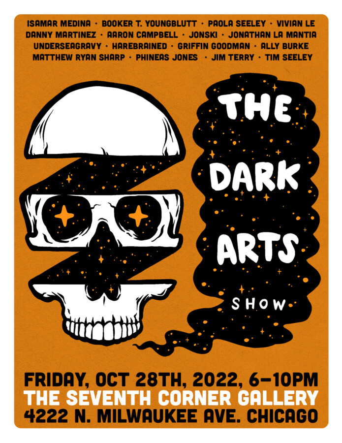 The Dark Arts is a cursed group show that will consume your mind and soul. All who enter the gallery will forfeit their sanity and be left to roam the Earth for all time. Featuring new work from ISAMAR MEDINA, BOOKER T. YOUNGBLUTT, PAOLA SEELEY, VIVAN LE, GRIFFIN GOODAMN and more! Free wine and beer!