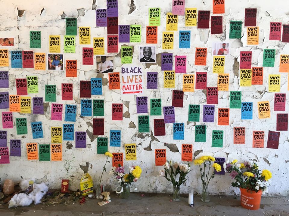 We are here every Sunday 11am-1pm honoring those who have been killed by police. Please join Cheap Art for Freedom (CAfF) and PO Box Collective in the maintenance of our public memorial under the El tracks at Glenwood and Farwell, to wheat paste a name to the wall, help keep the memorial swept, add flowers, pick up a free poster, or just show your solidarity.