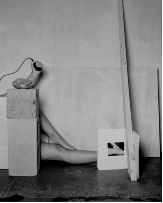 Each artist challenges, probes, or deconstructs well-known legacies of photography. Sonja Thomsen (United States, b. 1978) created a site-specific installation in tribute to the work of Lucia Moholy, whose prolific artmaking practice, scholarship, and contributions to the Bauhaus school was largely overshadowed by her husband, László Moholy-Nagy. Tarrah Krajnak (Peru, b. 1979) similarly looks at under-recognized contributions to the field, using her own body to recreate works Edward Weston made of his muses, Bertha Wardell and Charis Wilson. Krajnak amplifies the creative role Weston’s models played in the images, while claiming authorship in one of the most repeated and reductive tropes in photography: the female nude.