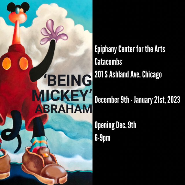 Being Mickey is a collaboration between Elephant Room Gallery and Epiphany Center for the Arts. To RSVP for free the opening reception on December 9th, 6 to 9 p.m. in the Catacombs, follow the link below: