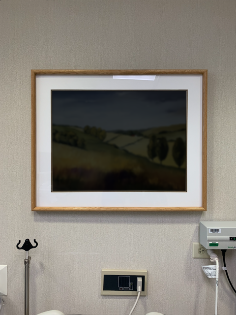 In 2019, my partner was diagnosed with pancreatic cancer. As I accompanied her to consultations, tests, and treatments I found myself considering the spaces in which the clinical met the individual. The hallways, waiting areas, and examination rooms were a pastiche of industrial wall coatings, clinical equipment, and artworks. In particular I was struck by the artworks that had been selected for display, often copies of well-known master works and pastoral scenes, placed into nearly identical serial cubicles. These visual spaces were meant to distract and calm and yet, I could only reflect on the fact that that was their purpose. All this while contemplating the unimaginable.