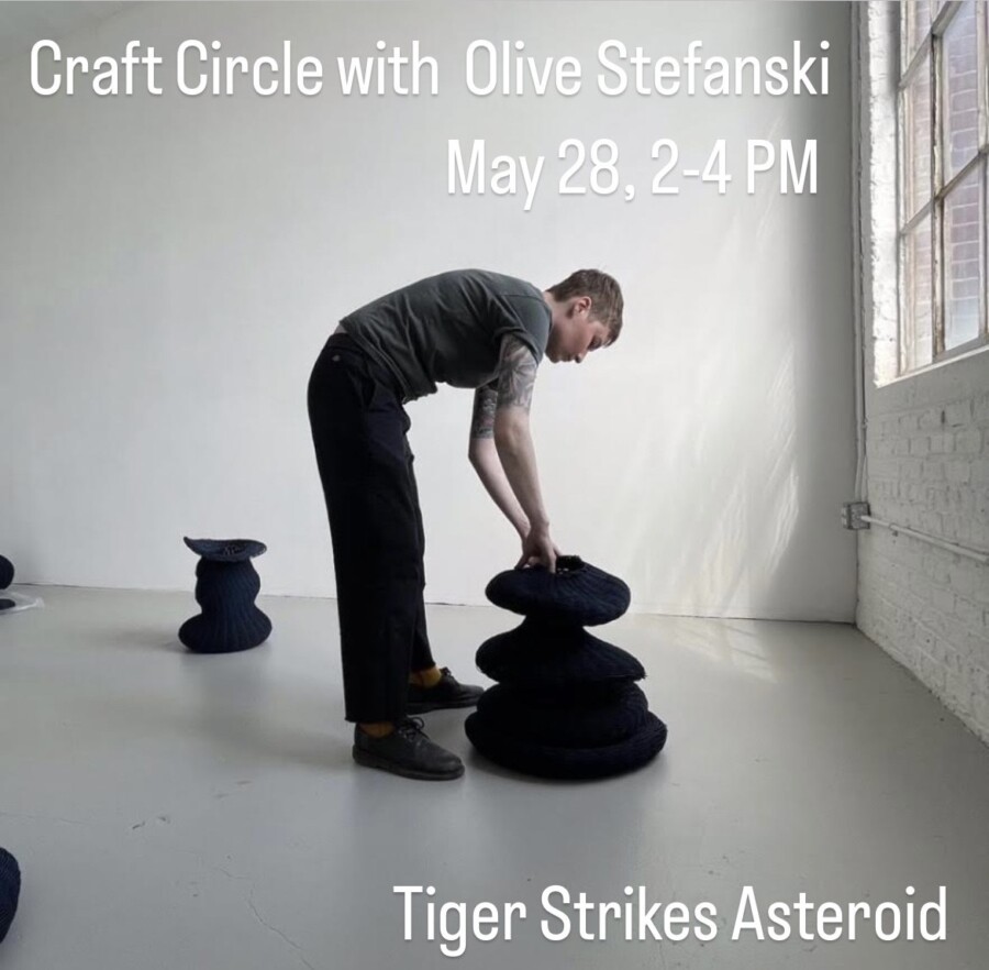 Bring your fiber art projects for an informal and fun time to make with others. Knitting, crochet, weaving, hand sewing, spinning, embroidery, quilting, all are welcome! Olive will give us a tour of the exhibition, answer questions, and then join in on the crafting. For comfort, bring your own cushion to sit on.