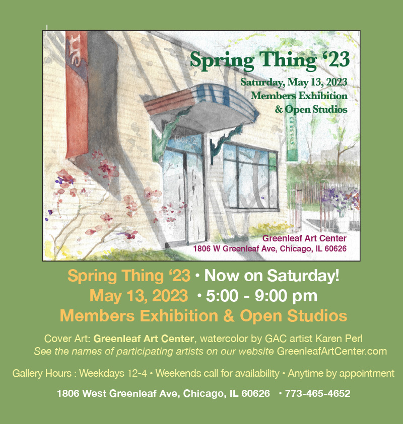 Artists who are participating in the Spring Thing ’23 are: • Bimbola Akinbola • John W Adams • Julie Ann Ausbrook • Mike Benedetto • Melanie Brown • Jennifer Chase • Pâté Conaway • Kathleen Cool • Peter Costas • Jeff Cote • Maureen Crowley • Susan Cua • Frances Cox • Jeanette Diaz • Annie Foley • Rev Kurt Fondriest • Stacey Foisy • Kathryn Gemperle • Carole Gibb • Mollie Green • Michele Gaudioso • Rena Grasser • Deborah Hansen • Peter Hauschild • Rachel Healy • Erica Holman • Sharon Hyson • Susan Ifergan • Michael Jackson • David Joseph • George Kase • Jennifer Kohnke • Connie Kiosse • Anatoliy Khmara • William Krug • Timothy Longwith • Marlon Lyles • Megan Magill • Tanya Márquez • Anita C Miller • Jacob Mosbacher • Niki Nolin • Lee Oberlander • Amanda Paulson • Kathleen Paluch • Karen Perl • Marie The’ Pent • Cortney Philip • Katerie Prior • Susan Range • Ariela Robinson • Fontaine Scarelli • Emmy Savage • Rhoda Sterling • Roger Stevens • Jill Sutton • Daniel Sullivan Tod Tappert • Angela Taylor • Michelle Thall ¨• Jeff Thiede • George E Thompson • Cordell White • Lauren White • Gordon Wood