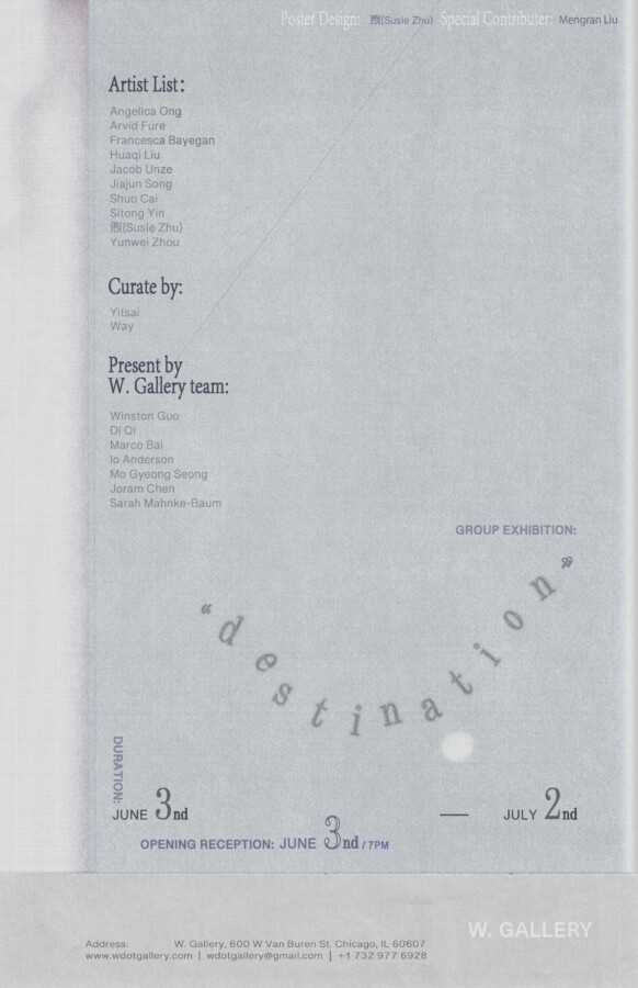 Tags: Angelica Ong, Arvid Fure, Chicago, Destination, Francesca Bayegan, Huaqi Liu, Jacob Unze, Jiajun Song, near west side, Shuo Cai, Sitong Yin, Susie Zhu, W. gallery, Yitsai and Way, Yunwei Zhou